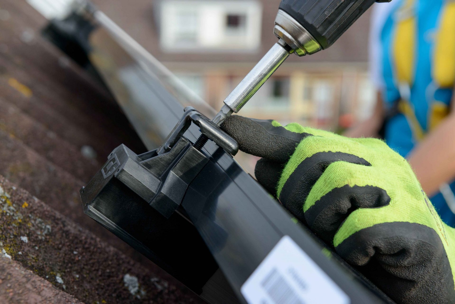 Innovative Einhak- und Klicktechnik. Nie mehr in die Dachkonstruktion bohren müssen. Klingt das für Installateure nicht wie Musik in den Ohren? Die Module brauchen nur noch verschraubt zu werden. Das Montagesystem ist dafür bereits mit einem einzigartigen Klicksystem auf den Dachhaken ausgestattet. Das Klicksystem macht nicht nur die Montage leichter, sondern mindert auch das Risiko, dass die Dacheindeckung beschädigt wird.