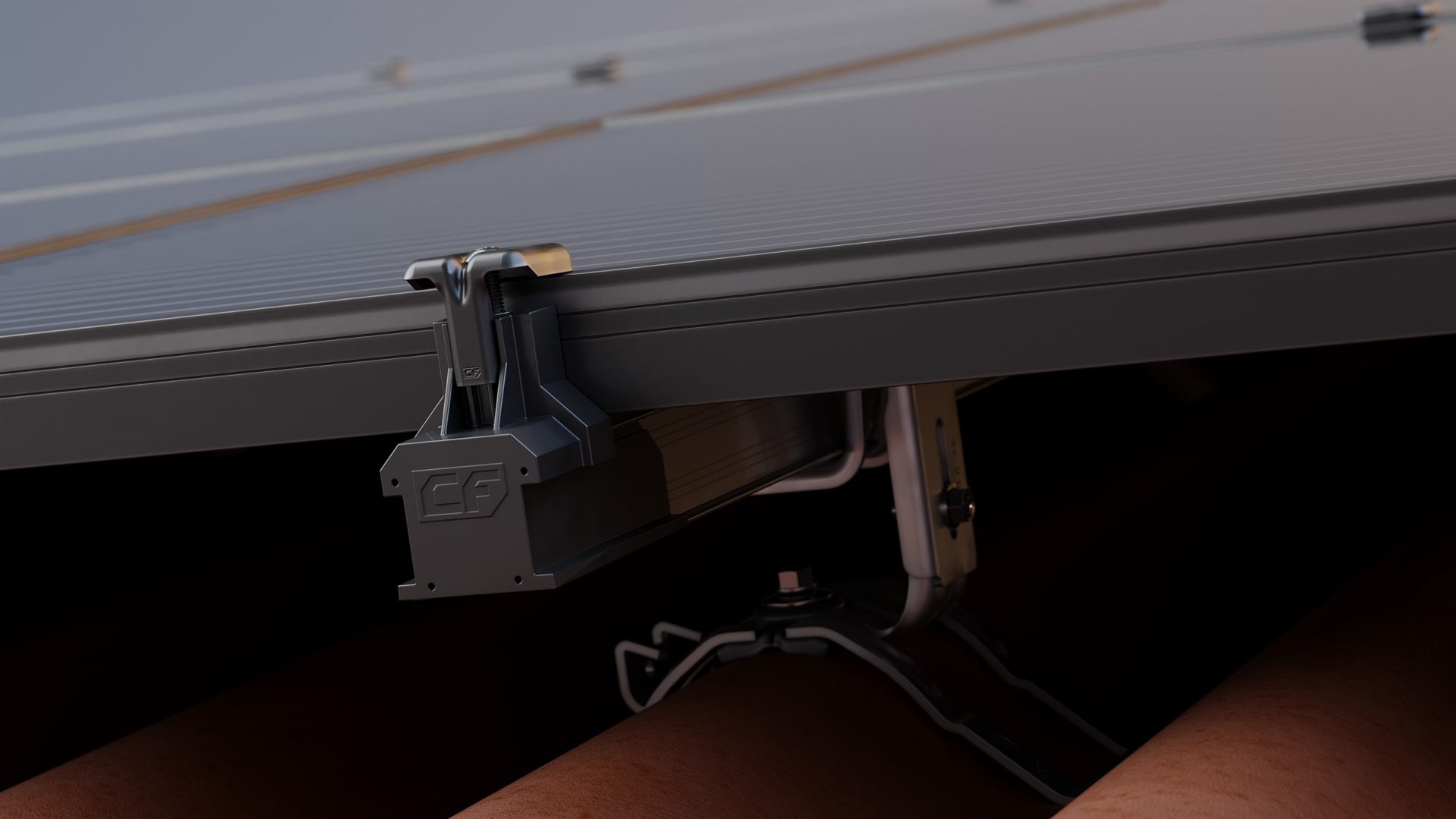All solar panels in the same row are automatically interconnected thanks to the ClickFit EVO Module Clamp. To bond the entire PV system, you do need to connect each row to grounding separately, because the individual rows are not connected to each other by the mounting system. The earthing conductor (≥Ø 4mm2) runs parallel to the positive and negative conductors and is connected to a separate grounding point of the inverter. If you have any questions about earthing and bonding, please contact our technical experts.