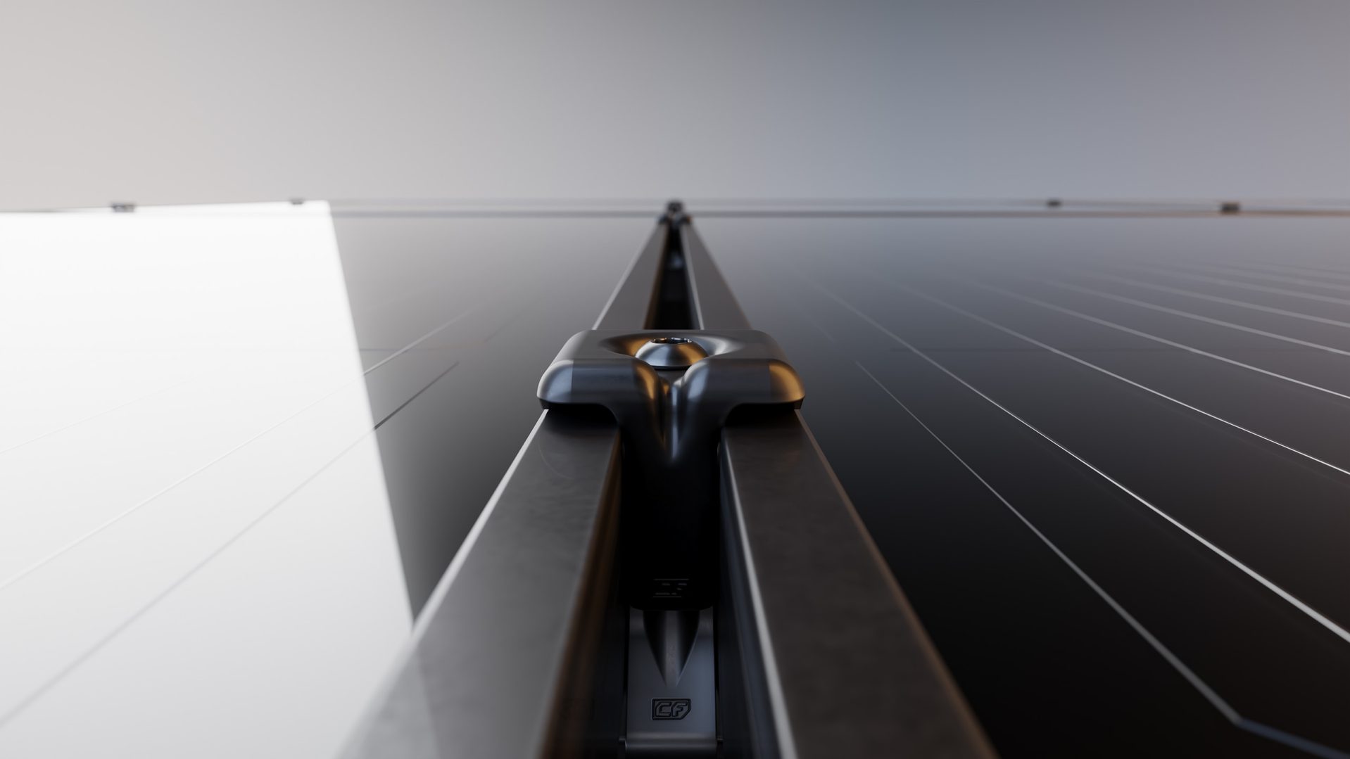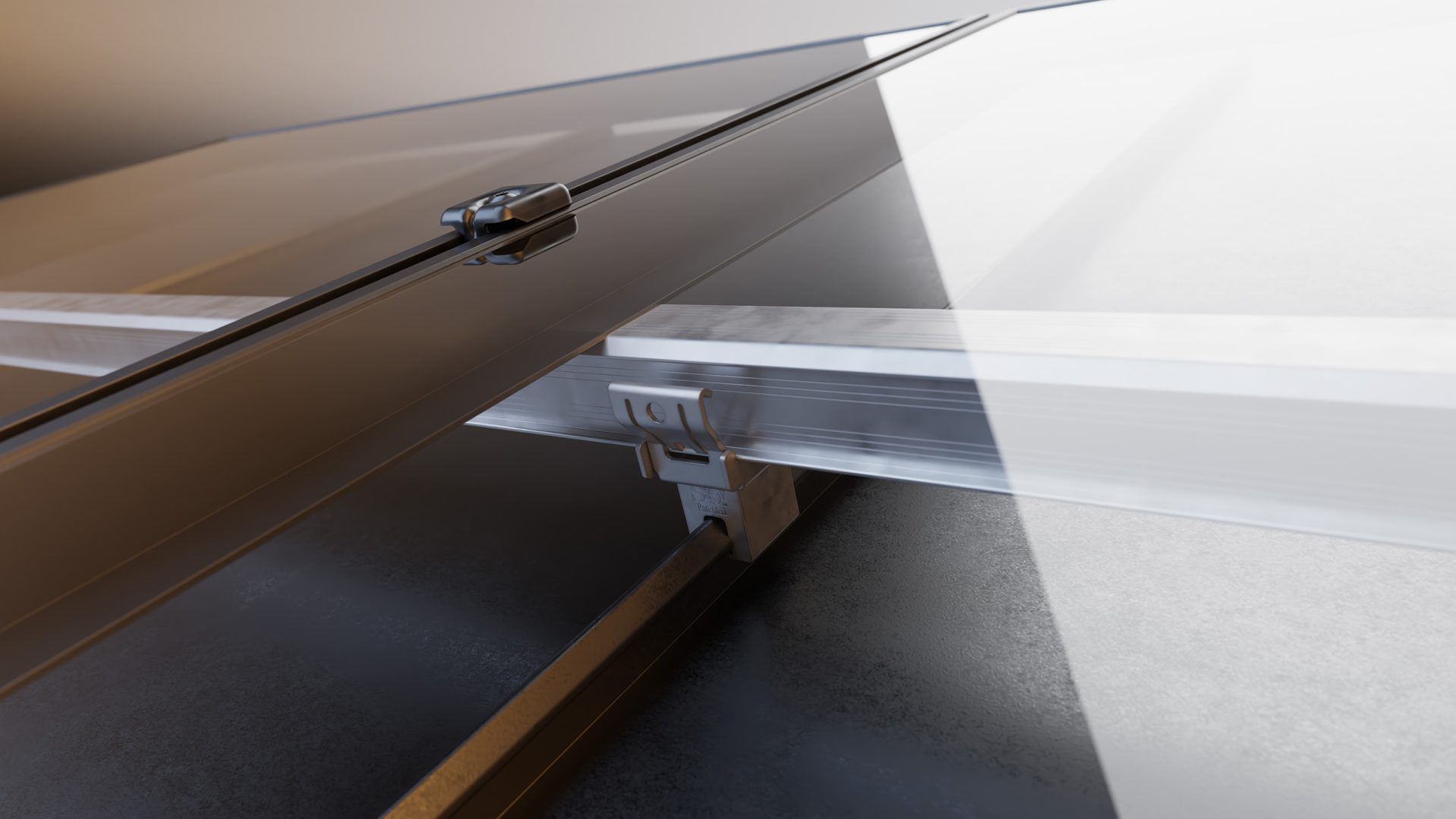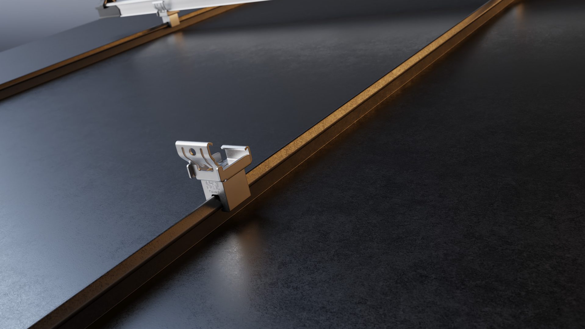 To install solar panels, place the pre-assembled standing seam clamp on the seam and tighten the Torx screw. The smart ClickFit EVO Standing Seam Roof system has a high rigidity, which means that you can often skip standing seams on the roof when mounting rails horizontally. The result is a quicker installation and lower costs.