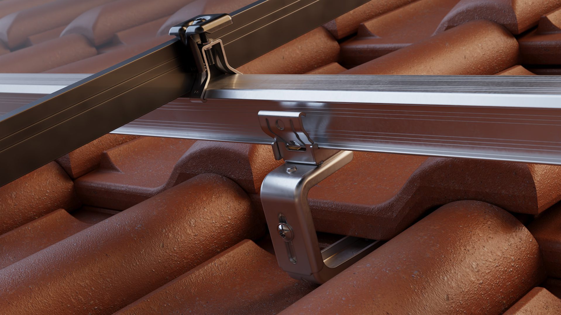 This smart solar panel mounting system consists of a handy hook-and-click system, meaning you no longer need to drill into the roof structure. You just click the rails onto the roof hooks, so all you have to do is screw the solar panels into place.