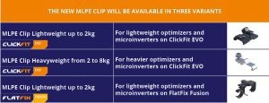 Today, we will introduce the MLPE clip for ClickFit EVO and FlatFix Fusion. MLPE stands for Module-Level Power Electronics, which includes optimizers and microinverters.