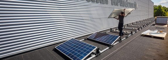 Alle zonnepanelen in dezelfde rij zijn automatisch met elkaar doorverbonden door de ClickFit EVO moduleklem. Voor een vereffening van de volledige PV-installatie dien je wel elke rij nog apart te verbinden met aarding, omdat de afzonderlijke rijen niet met elkaar worden verbonden door het montagesysteem. De aardingsleiding (≥Ø 4mm2) loopt parallel aan de plus- en min geleiders en wordt aangesloten op een separaat aardpunt bij de omvormer. Heb je vragen over aarden en vereffenen, neem dan contact op met onze technische experts.