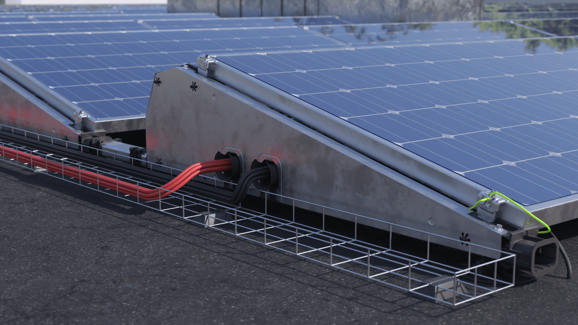 Winddeflectoren zorgen voor een aerodynamisch design waardoor de wind zo weinig mogelijk effect heeft op het gehele systeem. Dat zorgt ervoor dat er in de praktijk minder ballast geplaatst hoeft te worden. Deze zijplaten zijn aangepast en hebben afgeronde hoeken wat veiliger is voor de installateur en voor de kabels en levert minder kans op schade aan dakbedekking door het ontbreken van scherpe hoeken en randen. De belangrijkste update in dit onderdeel is dat de zijdeflectoren nu uitdrukbare kabeluitgangen hebben. In combinatie met de kabeluitgang kun je nu op een nog veiligere manier je kabels bundelen en afvoeren. Ook voor trekontlasting van de kabels is dit een wenselijke aanvulling aan voordelen van het systeem.