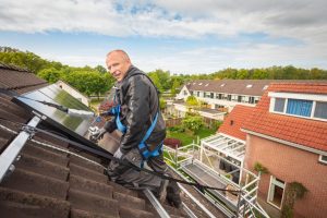Met twee man op het dak en één monteur in zijn huis voor het aansluiten van de omvormer zijn de zonnepanelen bij Christenhusz in (aantal uren) gemonteerd. “Het gaat echt snel. Die tijdwinst is belangrijk. Voor een kleine opdracht als die van mij, maar zeker bij grote projecten betekent dit veel.”