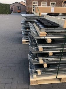 De geassembleerde basis modules van FlatFix Wave, klaar om op het dak te hijsen.