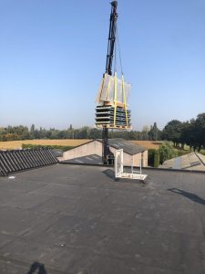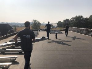 Met support en uitleg van Esdec wordt het systeem op het dak gepositioneerd.