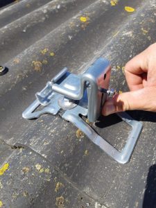 De golfplaat montagebeugel zorgt voor een waterdichte afdichting. De montagebeugel wordt namelijk aan de bestaande dakplaatschroeven in de gording bevestigd. De beugel is tevens traploos in hoogte verstelbaar.