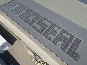 Op het bedrijfspand van Innoseal International B.V. realiseerde Devcon Ecosystems onlangs een PV installatie met een totaal vermogen van 105,5 kWp. Het was een bijzondere en ingewikkelde klus. De totale installatie mocht namelijk maar 15 kg per m2 wegen en de eigenaar wilde graag de letters van zijn bedrijfsnaam op het dak. Met behulp van het montagesysteem FlatFix Fusion zijn 247 panelen van het merk Canadian Solar geplaatst. Met behulp van een drone zijn de letters erg mooi te zien.