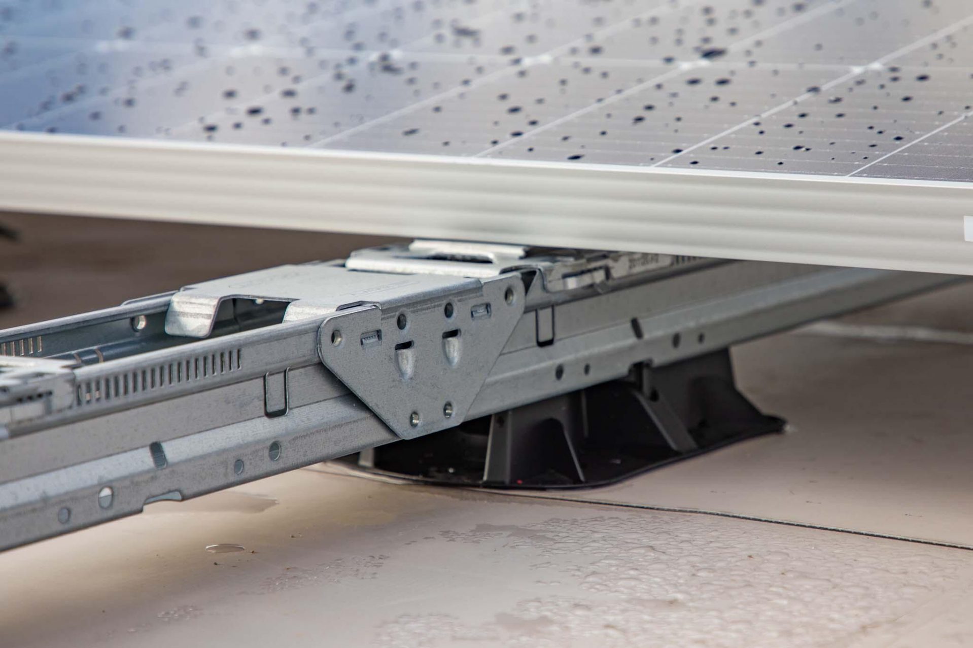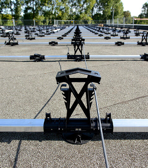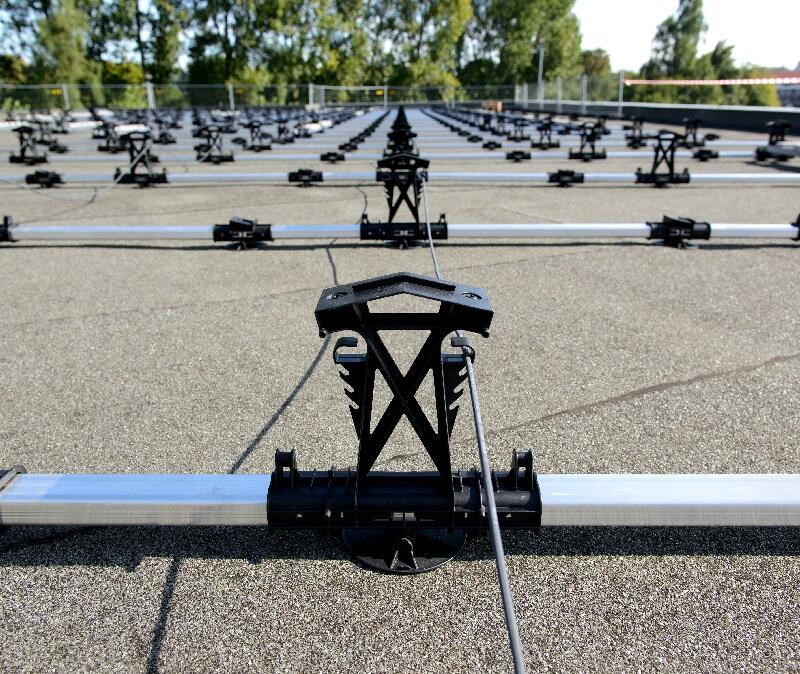 Een ander uniek element van de FlatFix systemen zijn de daksteunen. Deze hebben namelijk een zelfinstellend vermogen waarmee het systeem thermisch wordt ontkoppeld. Doordat het systeem over de daksteunen heen kan glijden, worden de krachten die vrijkomen bij gebruik van het montagesysteem niet doorgegeven aan het dak, andersom is dat ook het geval. Hiermee wordt schade aan het systeem of de dakbedekking voorkomen.